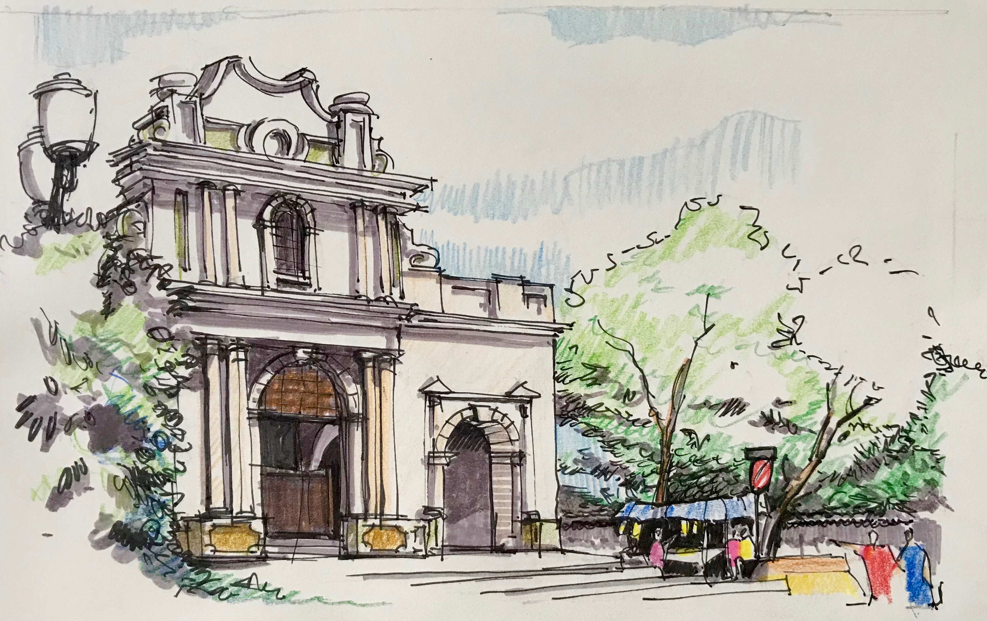 Applying color and adding some details to my weekend urban sketches, also created a new one from a pencil sketch i did not have the time to end on site. I had not been out Sketching in the streets for months, always a pleasure, it is because i only do it when i travel, I’m going to try to be a little braver to do it in this dangerous country.