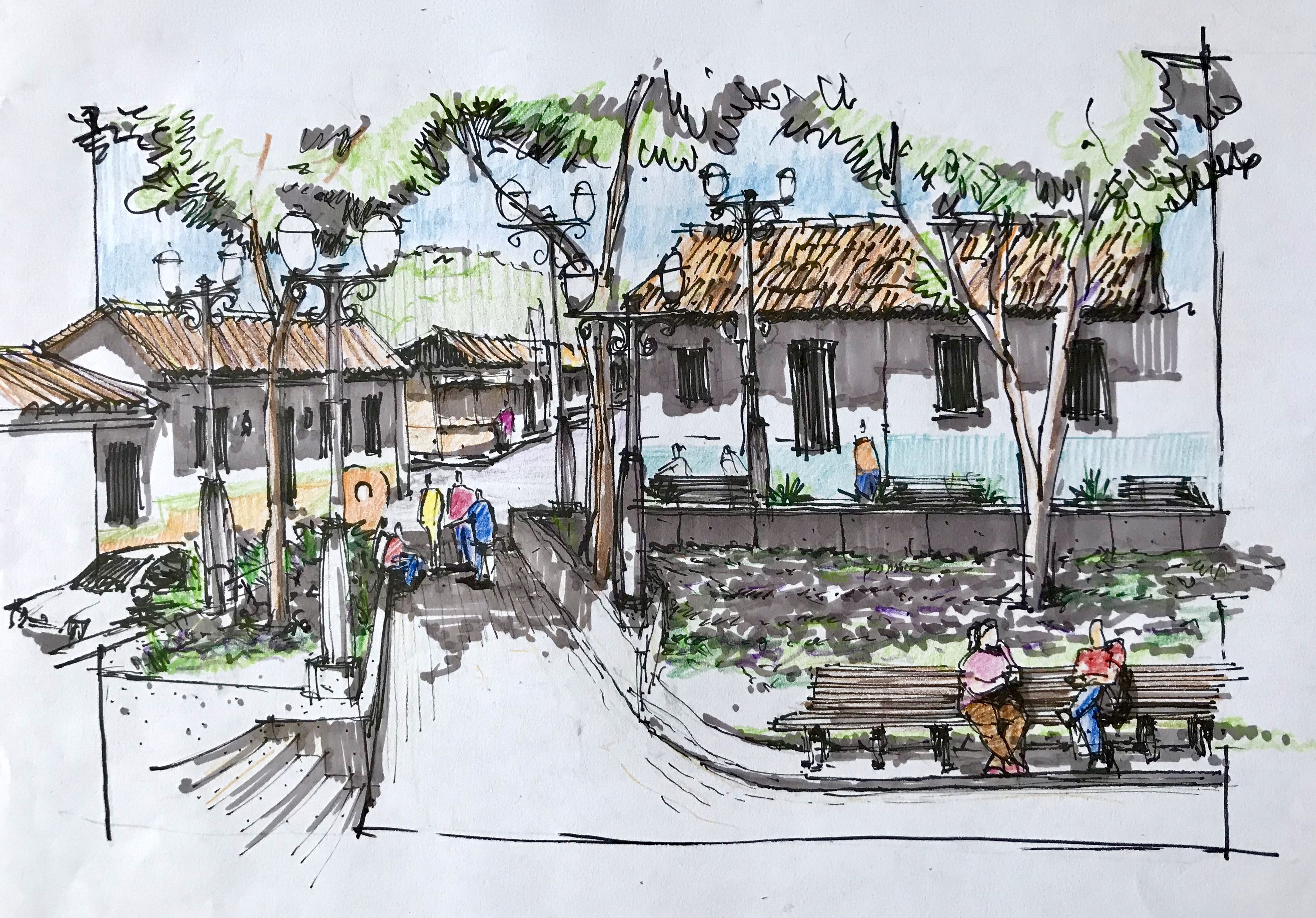 Applying color and adding some details to my weekend urban sketches, also created a new one from a pencil sketch i did not have the time to end on site. I had not been out Sketching in the streets for months, always a pleasure, it is because i only do it when i travel, I’m going to try to be a little braver to do it in this dangerous country.