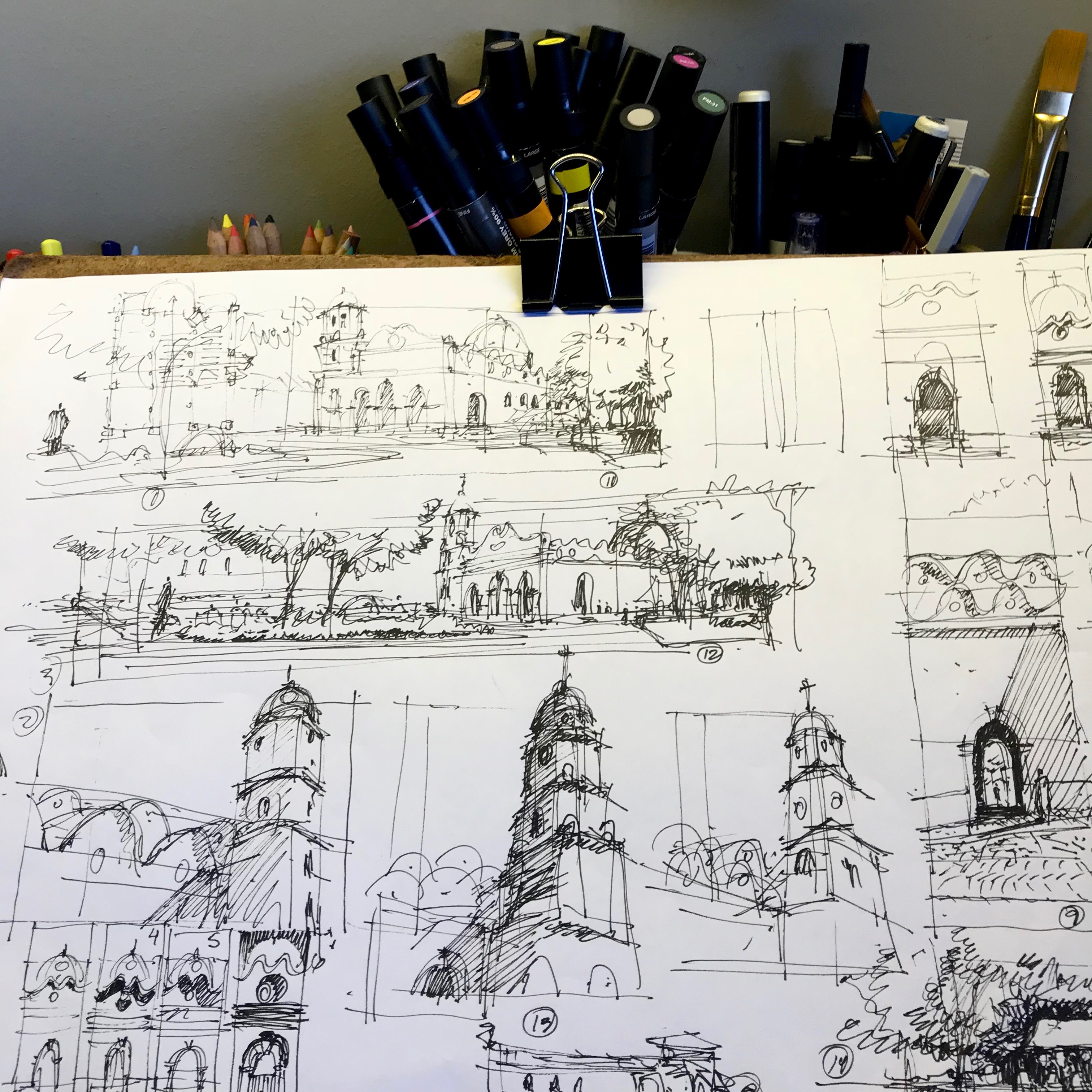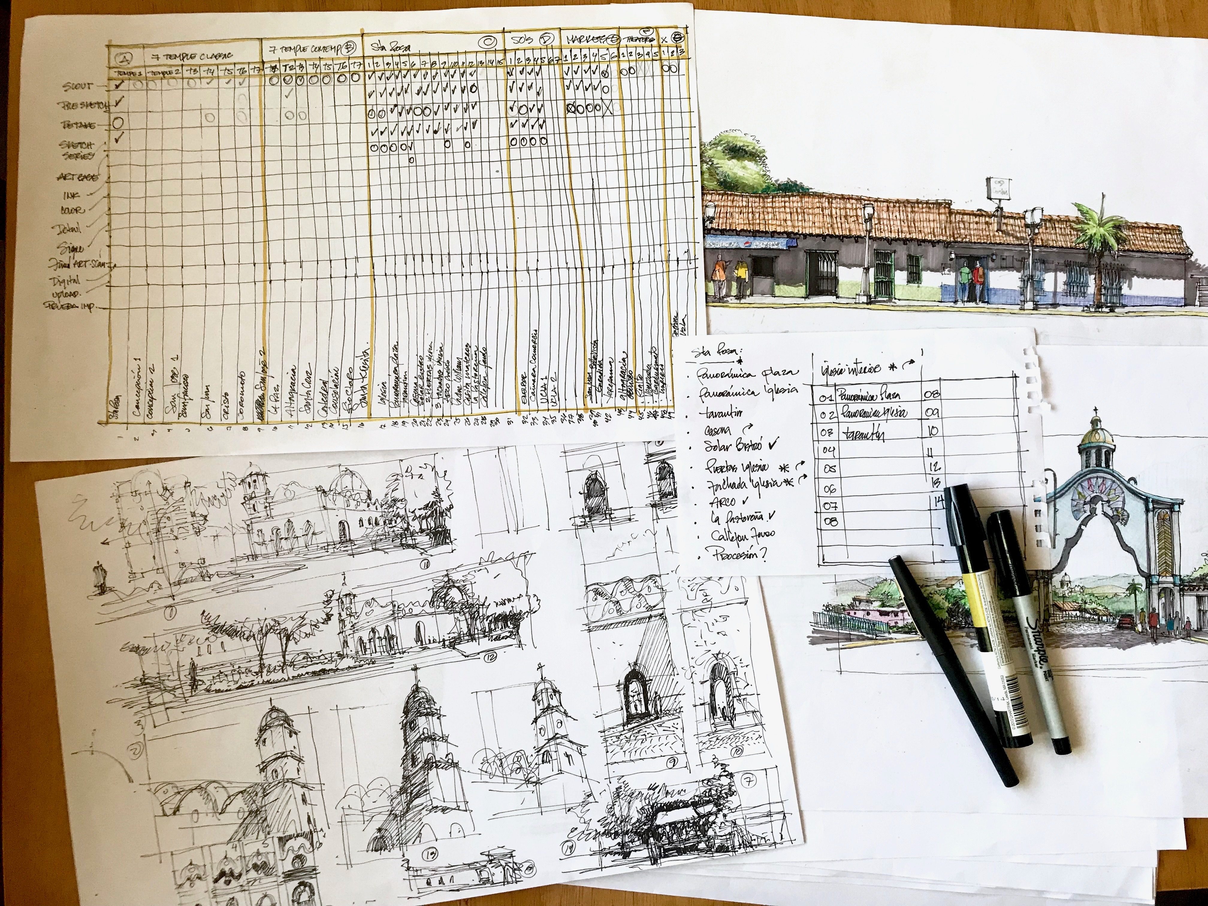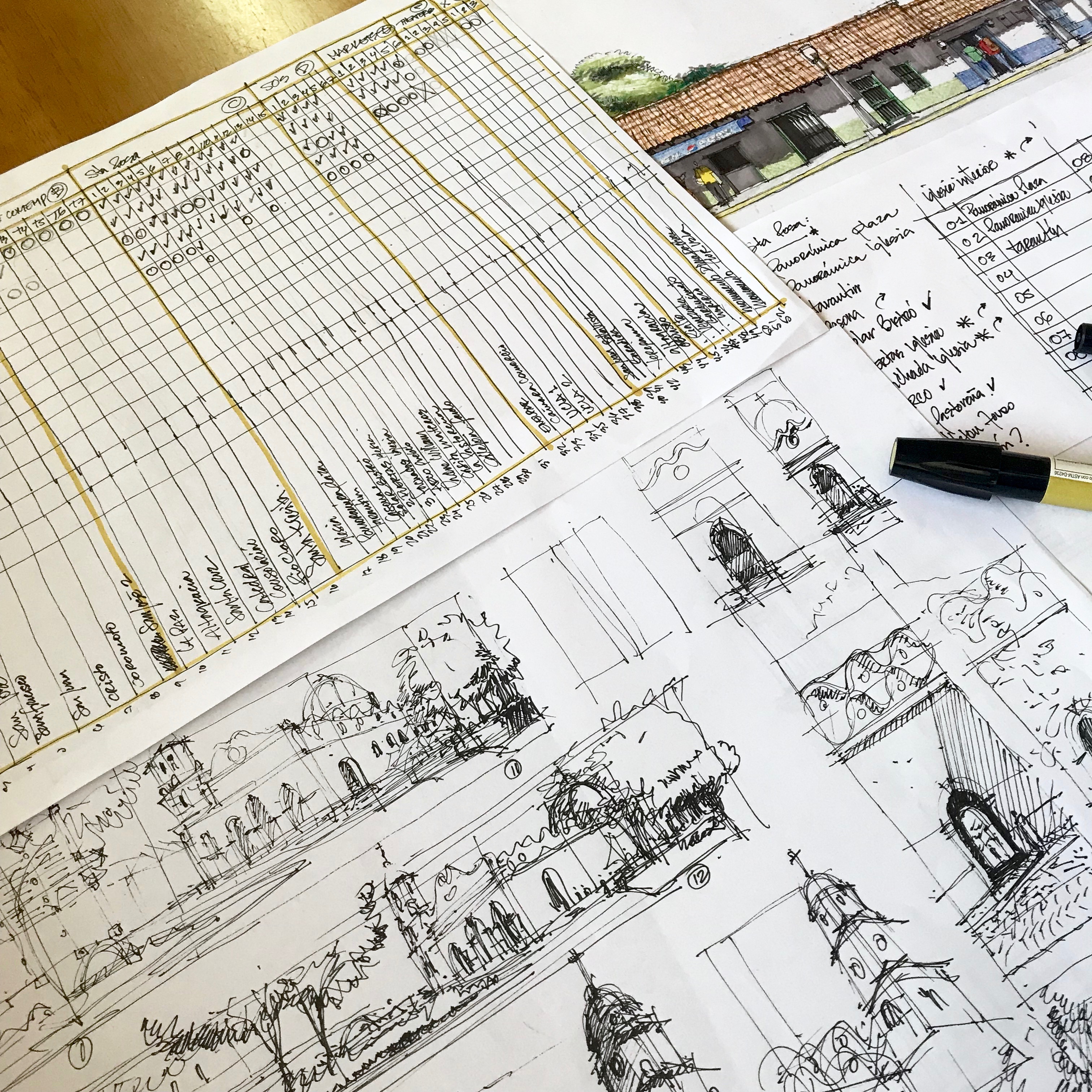 Esta es la semana más importante del año para la ciudad de Santa Rosa, estoy reanudando mi proyecto de registro de Santa Rosa así que mi café y yo estamos aquí creando este cronograma de entregas para continuar con este proyecto. Tengo un montón de sketches hechos en sitio de entre los cuales elegiré mis favoritos para crear una especie de serie de ilustración.