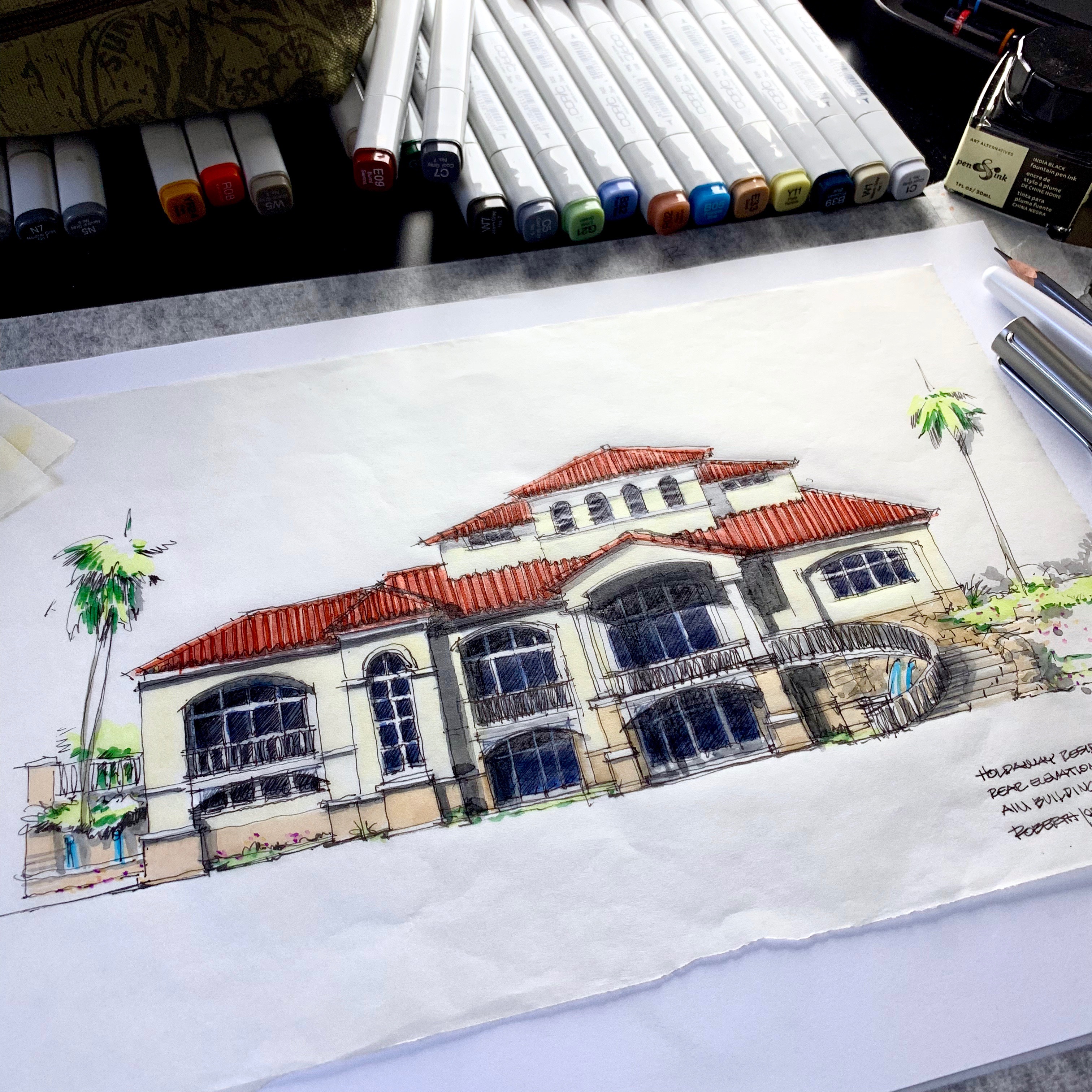 I’m going to Texas for a business trip soon. So I had to do an early morning sketch session before leaving. I’m Sketching a House in Dallas, looking for a house curb appeal for a client in Dallas, TX who required a Mediterranean Style House.