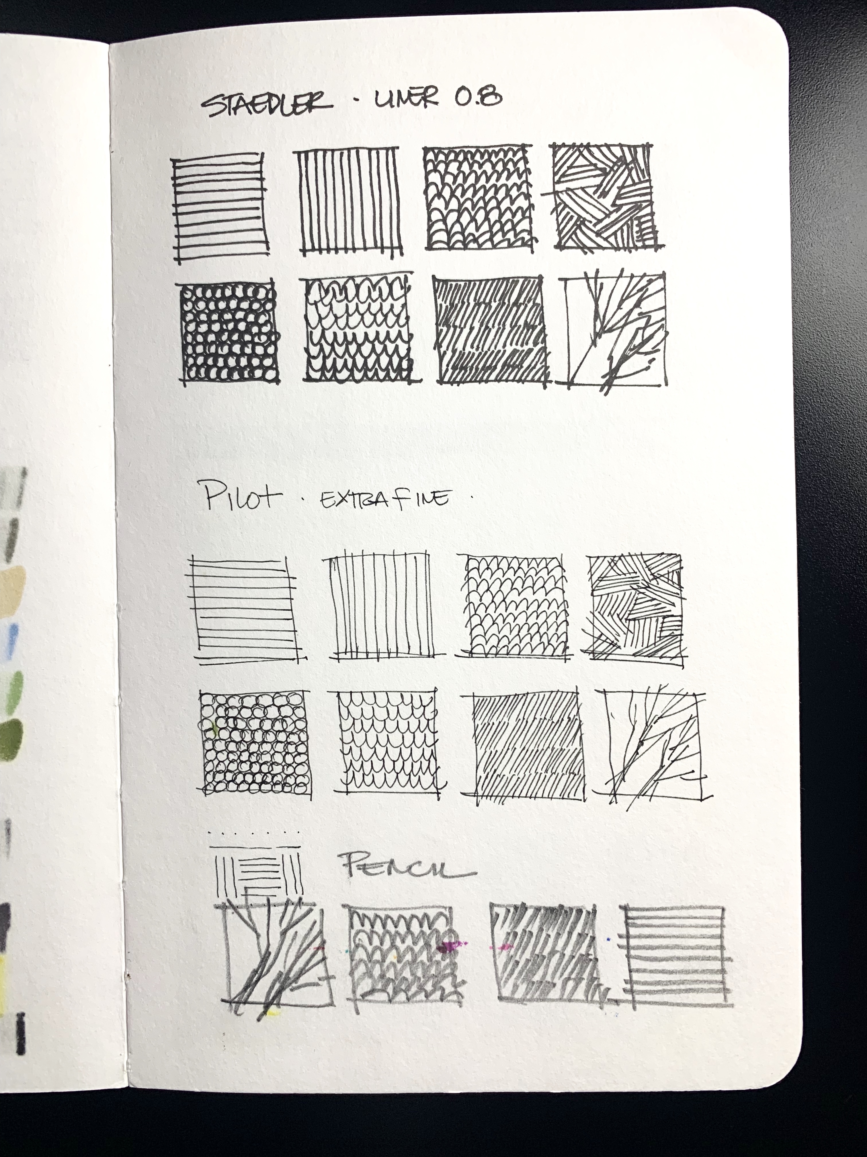 Lo primero por hacer en una libreta desconocida es probar sobre ella las técnicas y herramientas que normalmente usas para ver como reacciona, cómo el nuevo sustrato hace lucir el trabajo que normalmente haces, cómo se adapta a ti e incluso como tendrías que adaptarte a ella en caso de que decidas tomarla como tu libreta oficial.