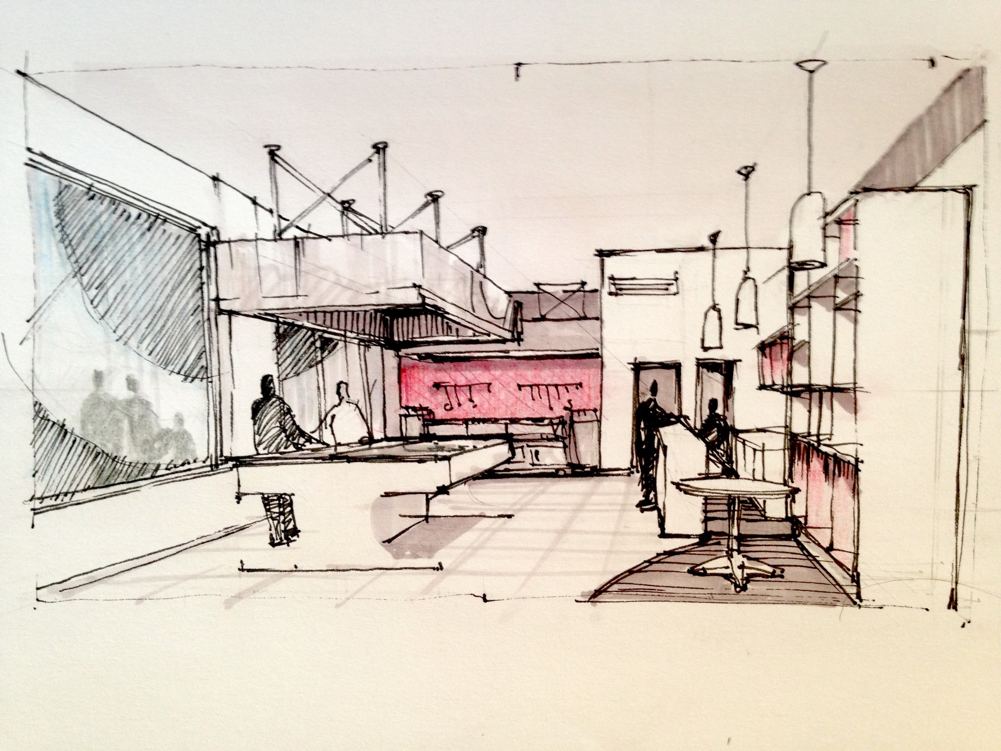 Sketches para la remodelación de nuestra tienda física de Equipos para Restaurant. Interesante porque fue una rápida ejecución que contó solo con la amplia experiencia y estos dibujos para su ejecución.