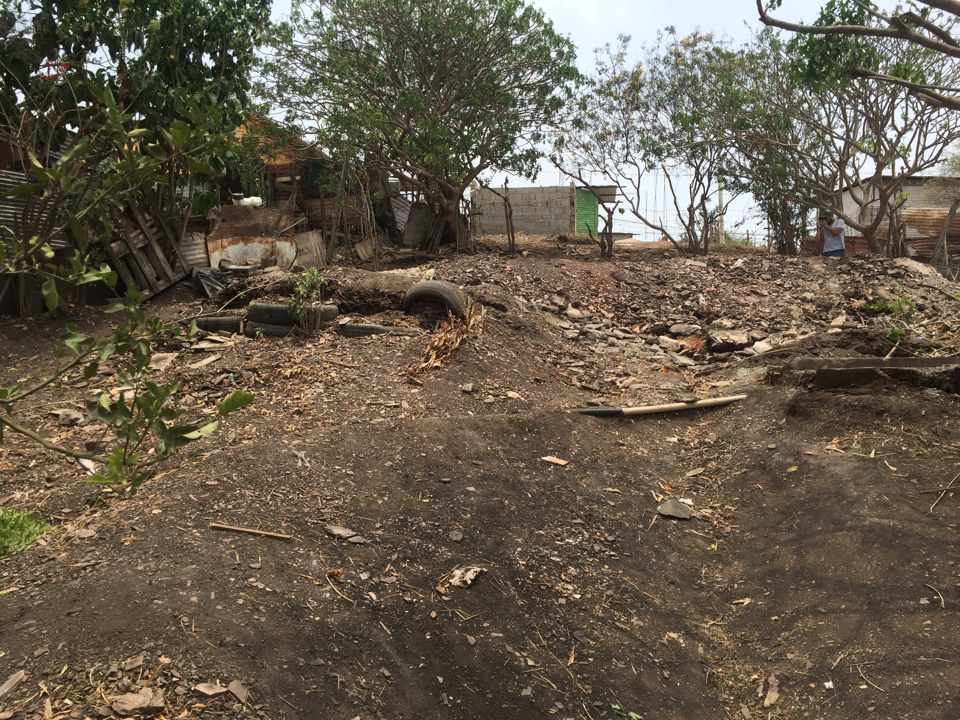 El replanteo de la unidad de vivienda en el terreno nos reveló serios defectos en el levantamiento hecho al terreno, lo que nos obliga a modificar la ubicación de la vivienda, incluso la altura de la implantación fue variada buscando bajar el centro de gravedad de la misma y lograr así un mejor asentamiento.